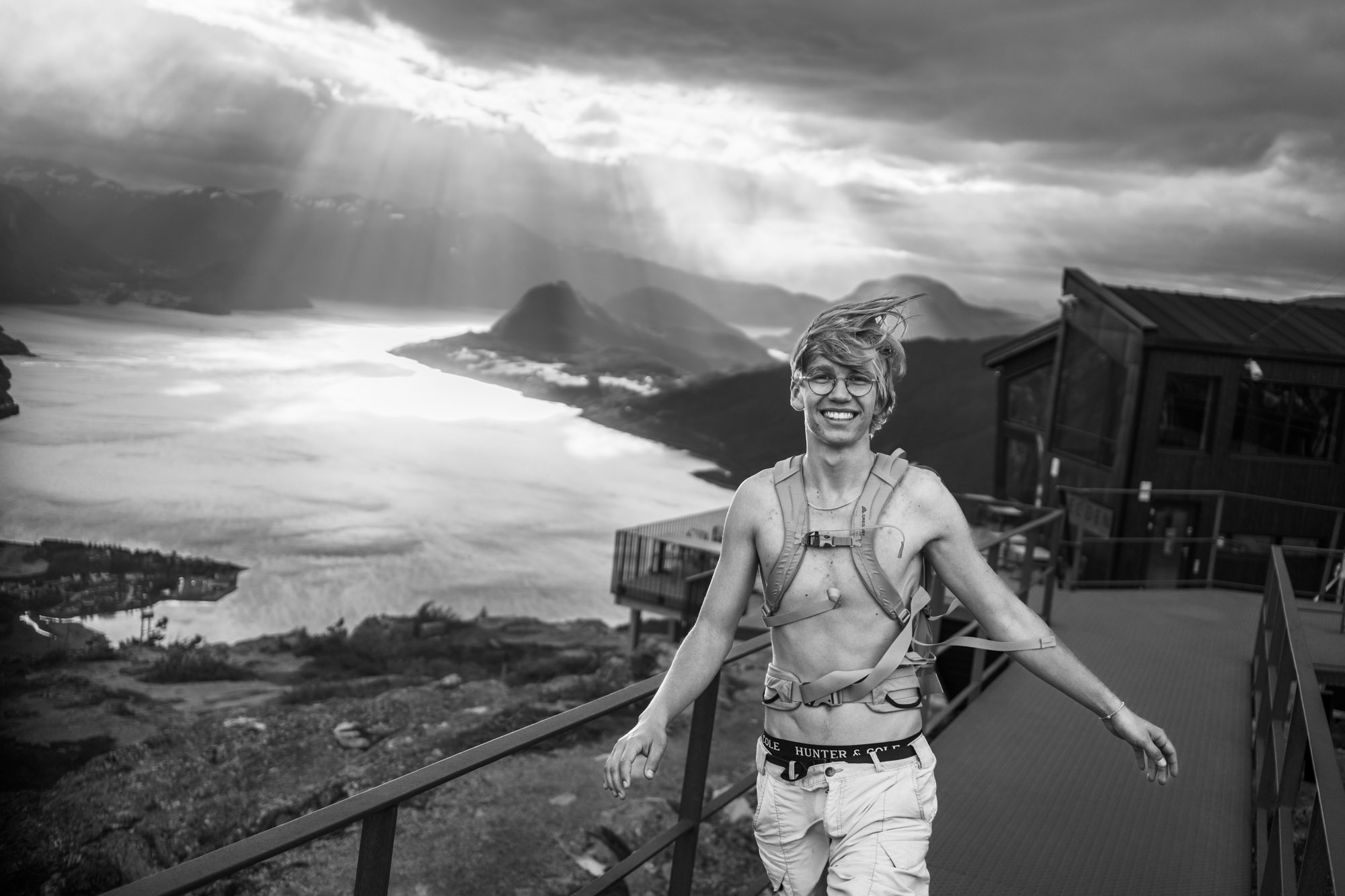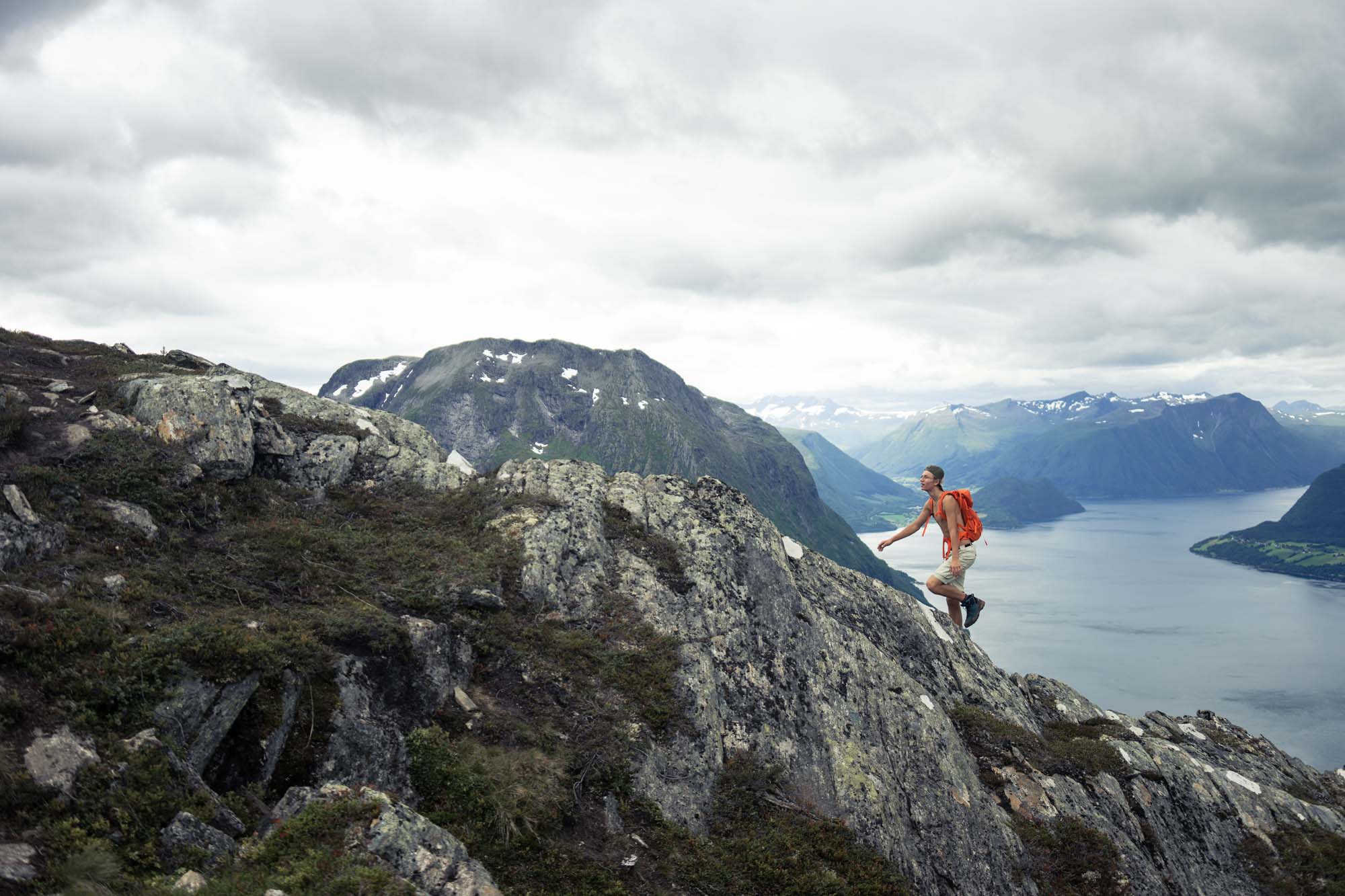 My mission this day was to show how the sub 100 gram Samyang 35mm F/2.8 lens for Sony E mount could be used as a casual lens for hiking in the outdoors. Naturally we went for a hike on the beautiful ridge Romsdalseggen just above my house and brought the camera.